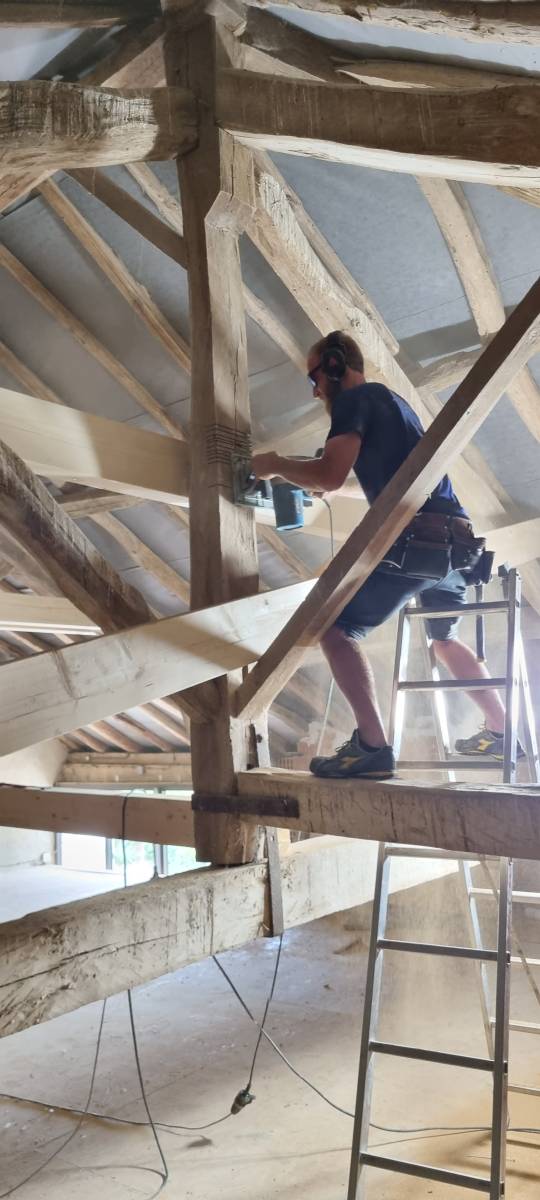 Natif de Remiremont dans les Vosges, titulaire d’un CAP à l’âge de 15 ans et d’un brevet professionnel charpente en bois, j’ai eu la chance d’apprendre le métier de la charpente traditionnelle en chêne ou châtaignier, mais également sur du colombage traditionnel en Alsace, dans le nord-est de la France, pendant 7 ans.